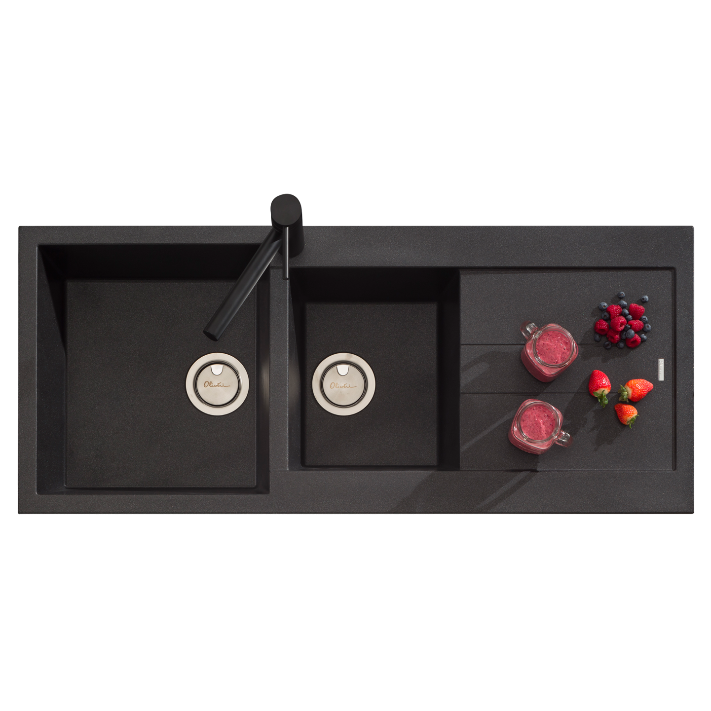 The Santorini 1 and 3/4 Offset Bowl with Drainer is ideal for those who enjoy a larger main bowl, with the practical addition of a 3/4 bowl. Santorini sinks are scratch resistant, impact resistant and heat resistant.