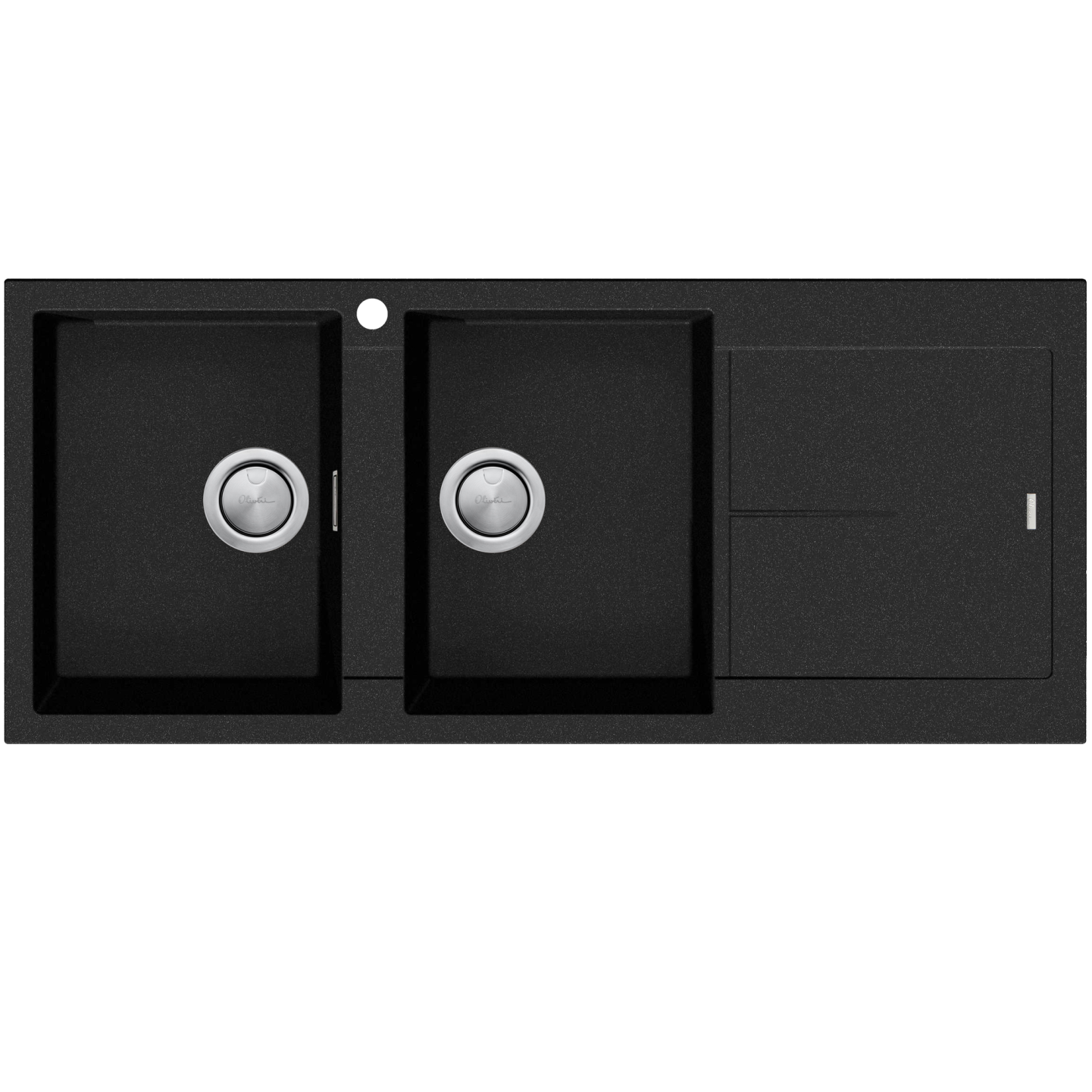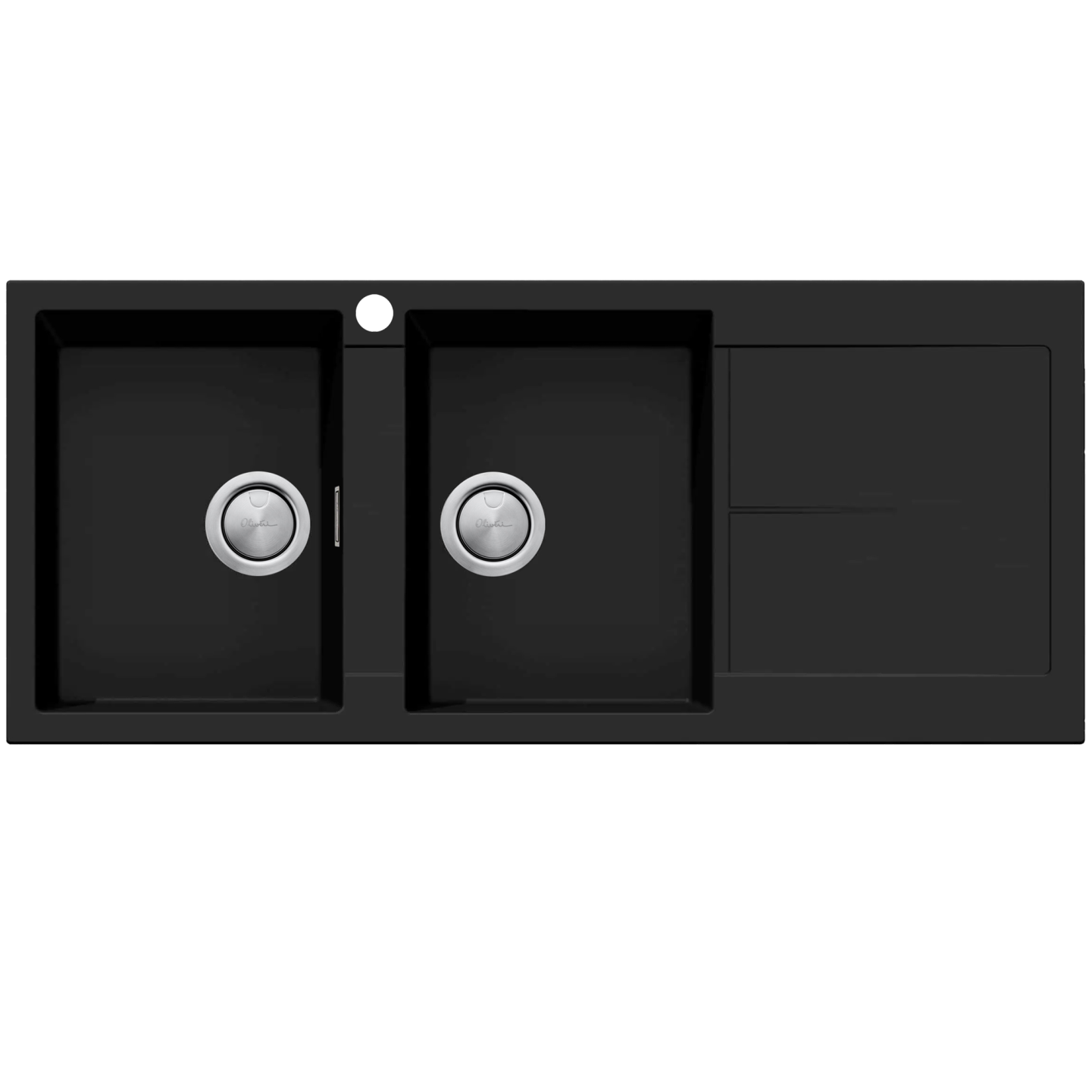 This Santorini double bowl sink combines two full-size bowls and a drainer. Santorini sinks are scratch resistant, impact resistant and heat resistant.
