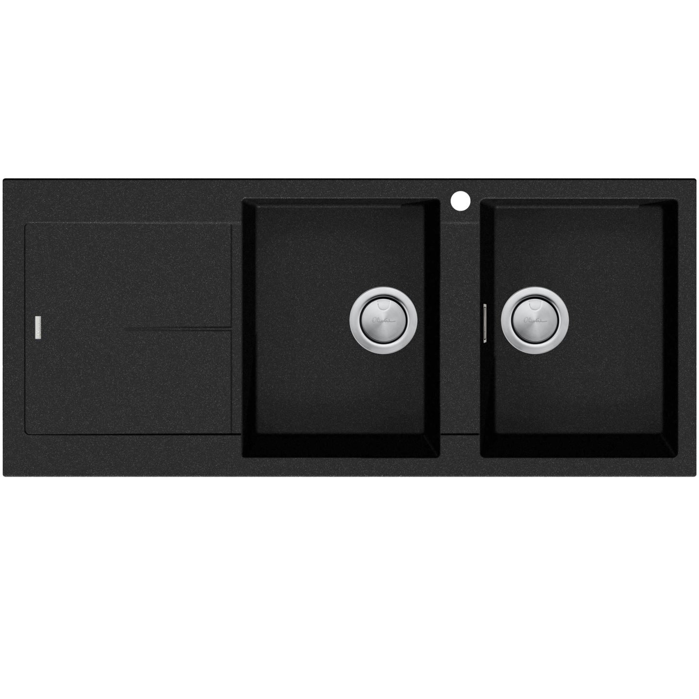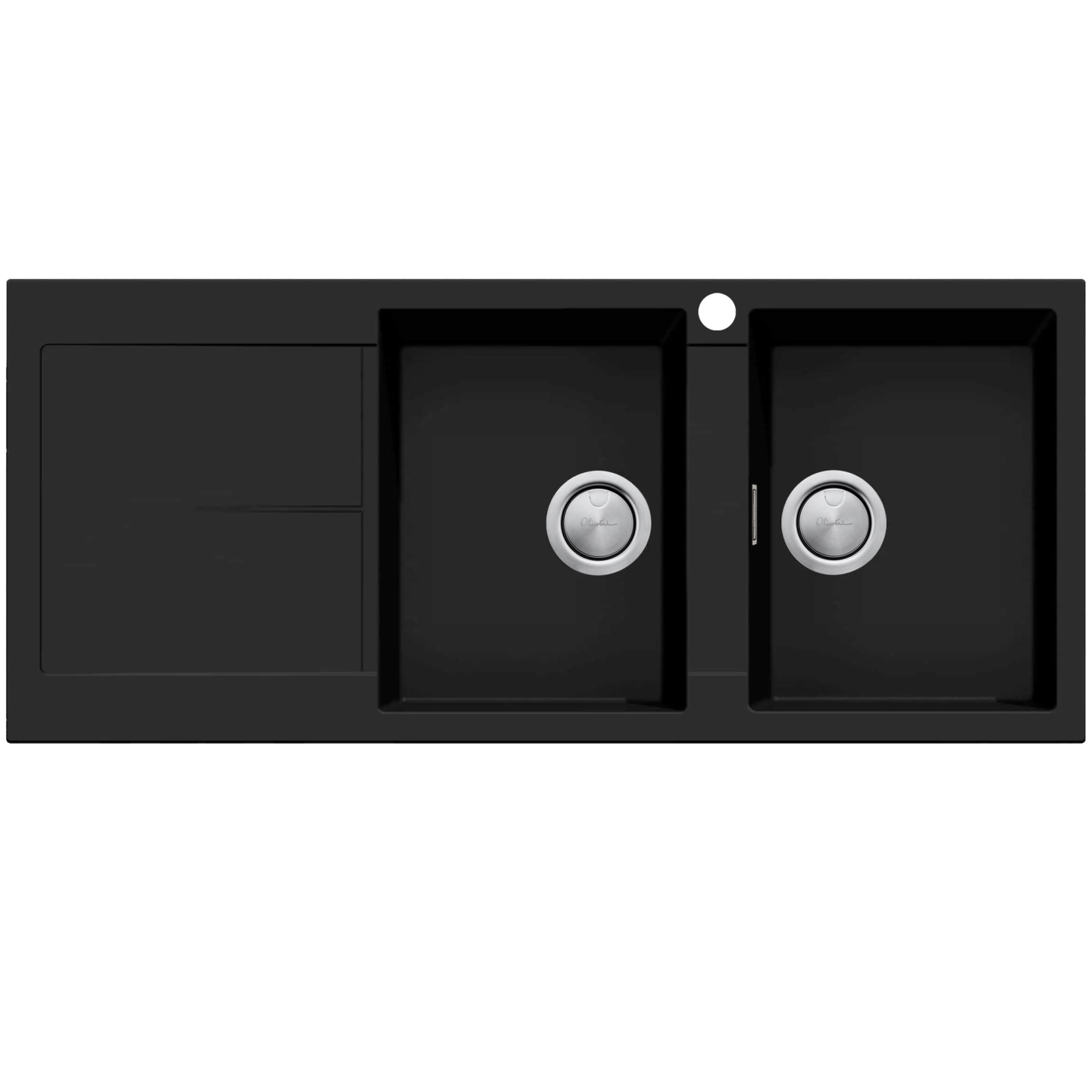 This Santorini double bowl sink combines two full-size bowls and a drainer. Santorini sinks are scratch resistant, impact resistant and heat resistant.