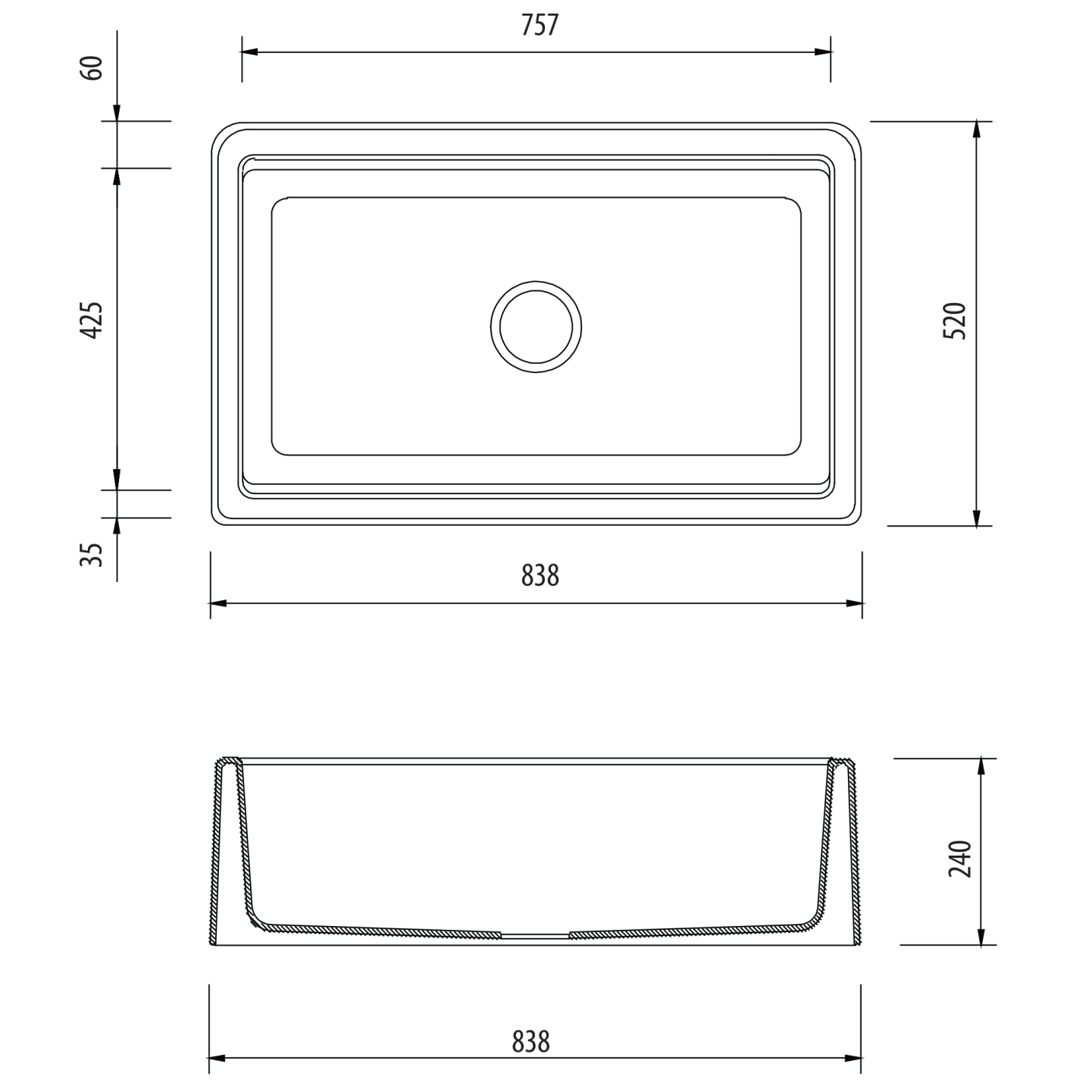 Can be installed with a narrow front and edge radius of 18mm or wider front with a 40mm edge radius depending on the kitchen style.