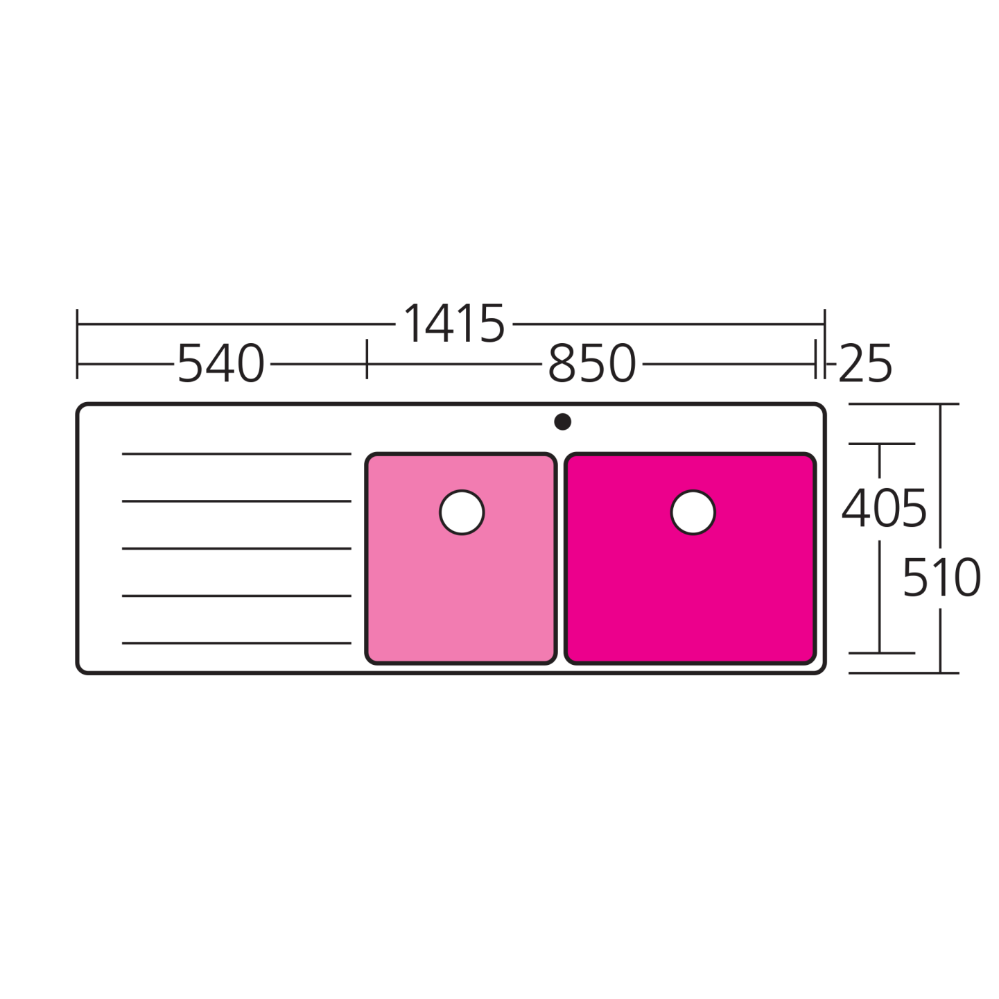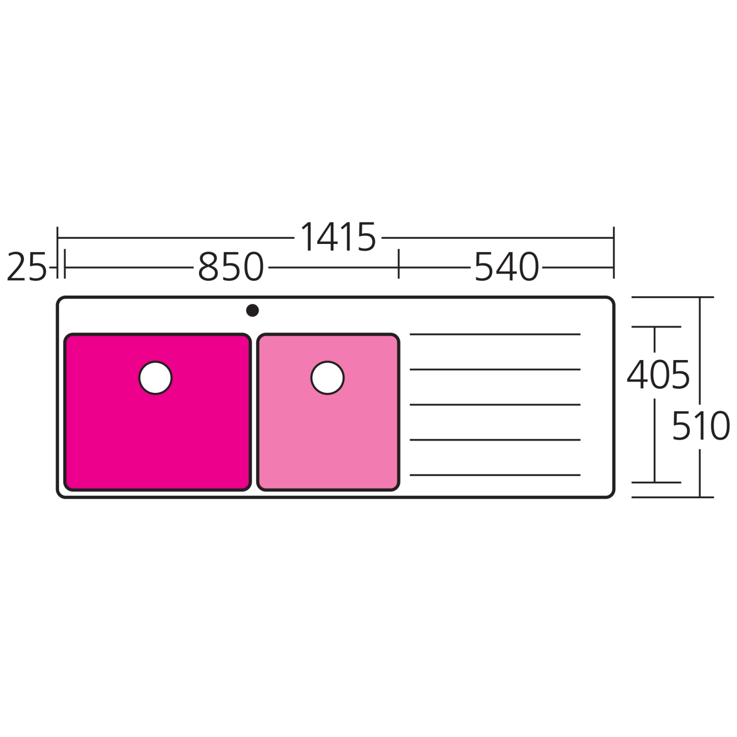 Softly squared 25mm radius corners are hygienic and easy to clean.