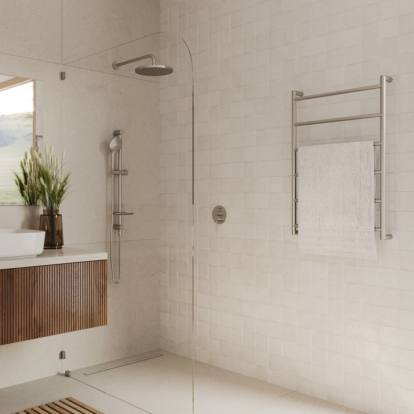 The Oliveri Venice heated towel rails and ladders are a range of safe, low voltage, low power consumption bathroom accessories. Finishes include highly polished stainless steel (with a bright chrome appearance), brushed stainless steel (for a brushed nickel appearance), gunmetal and matte black.