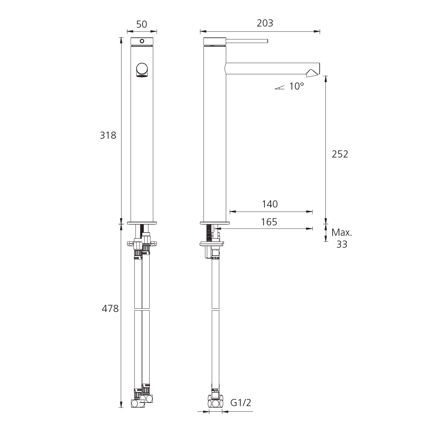 Venice basin and tower basin mixers are available with a straight, curved or angled spout. Wall mixer sets and wall spouts come in straight and curved spout options.