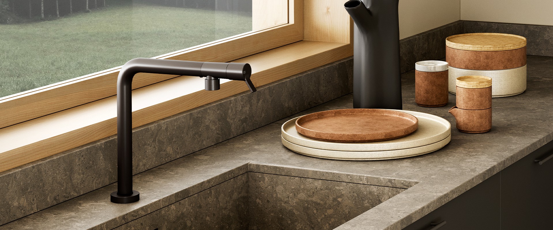 As living spaces become more flexible, the kitchen often opens onto the living room, or an alfresco area, sometimes with a sink under a window. In these situations, a sink mixer that can ‘disappear’ discreetly into the bench when not in use has distinct advantages.